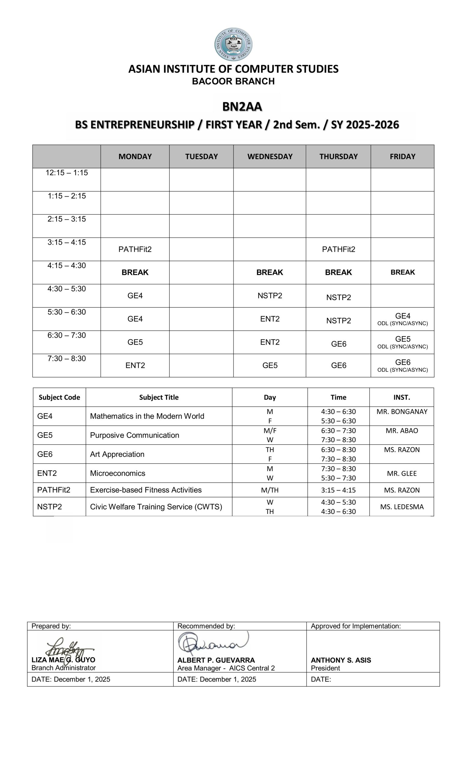 SHS Grade 11, 12, and BS Degree Programs SY 2025-2026