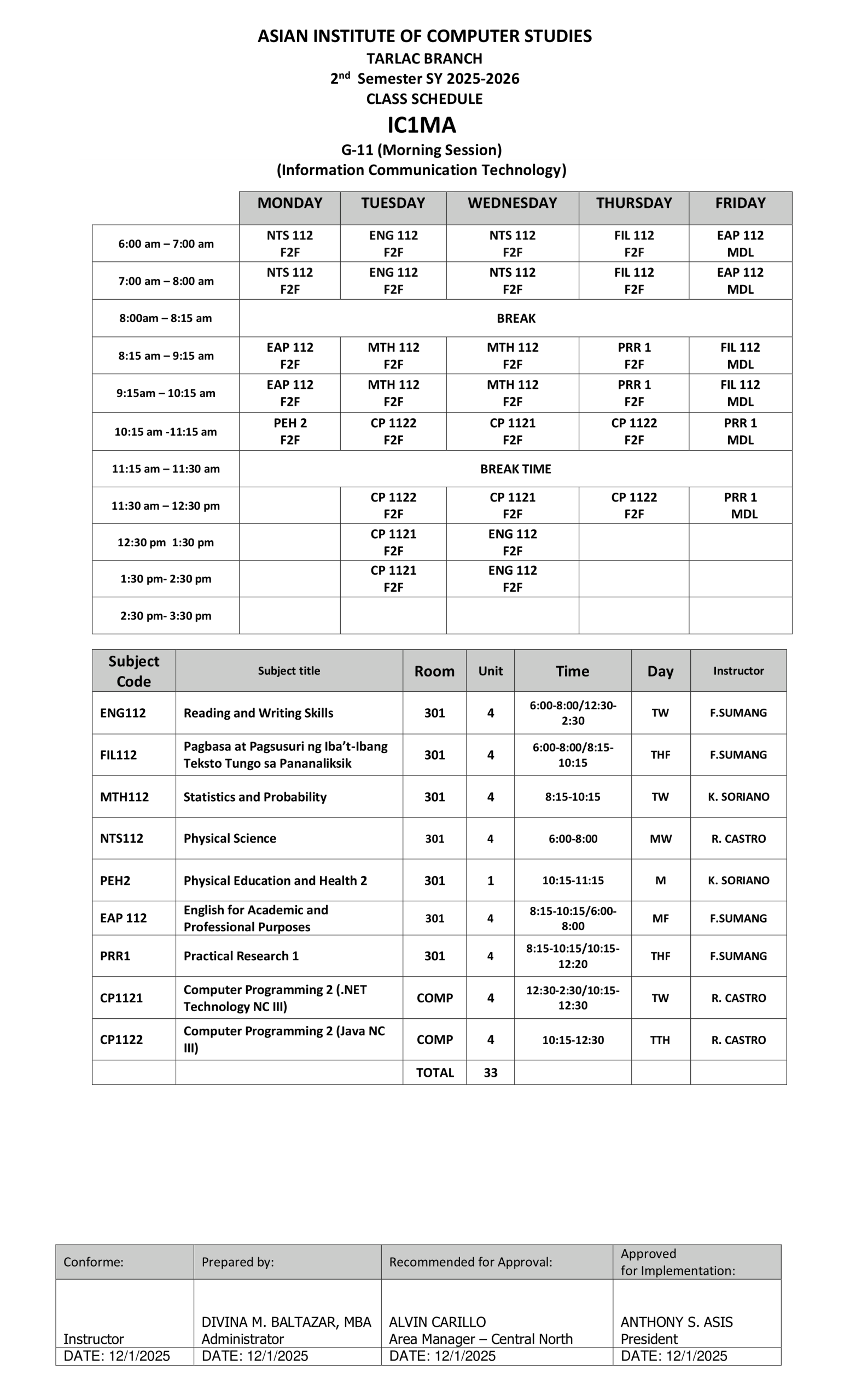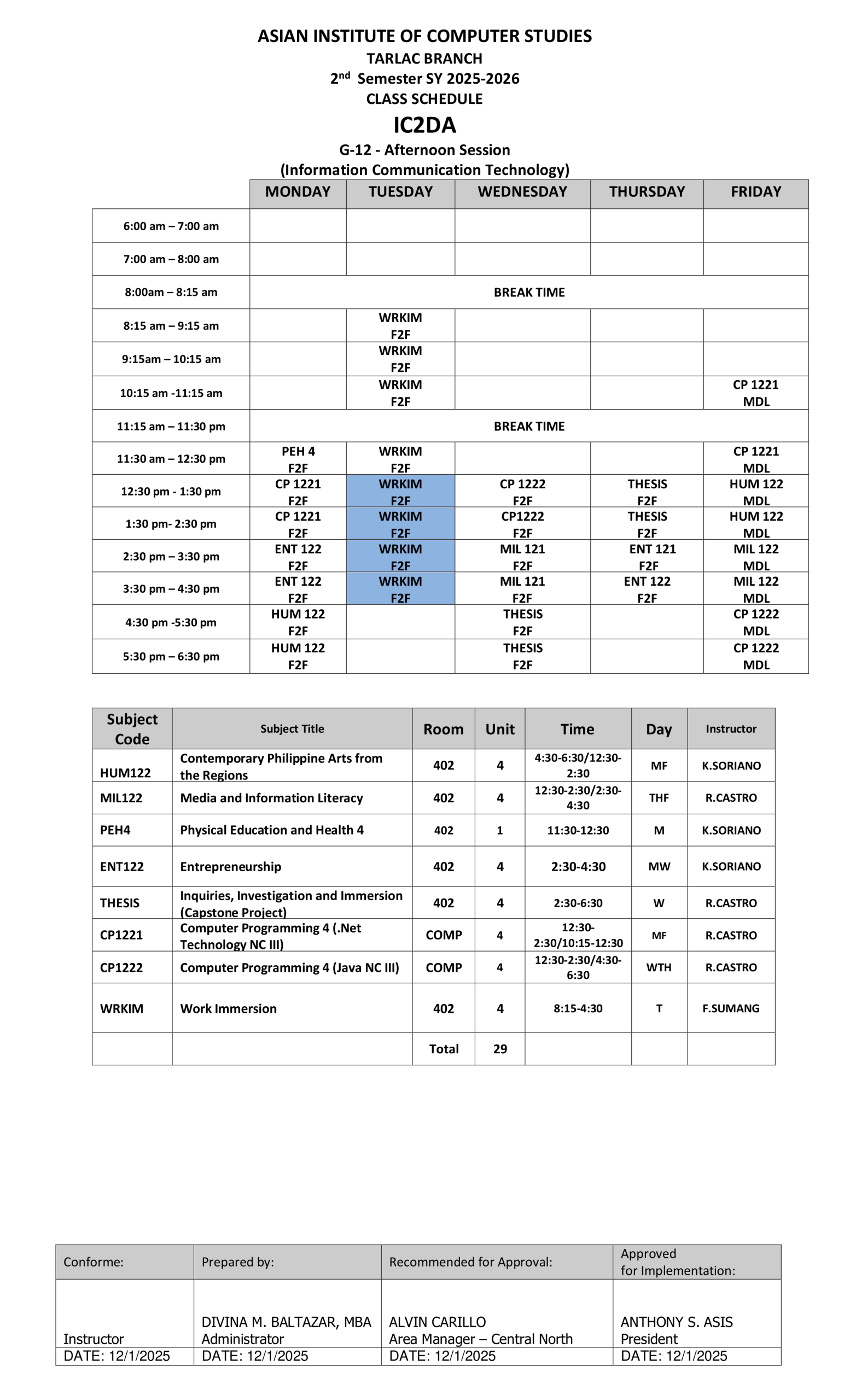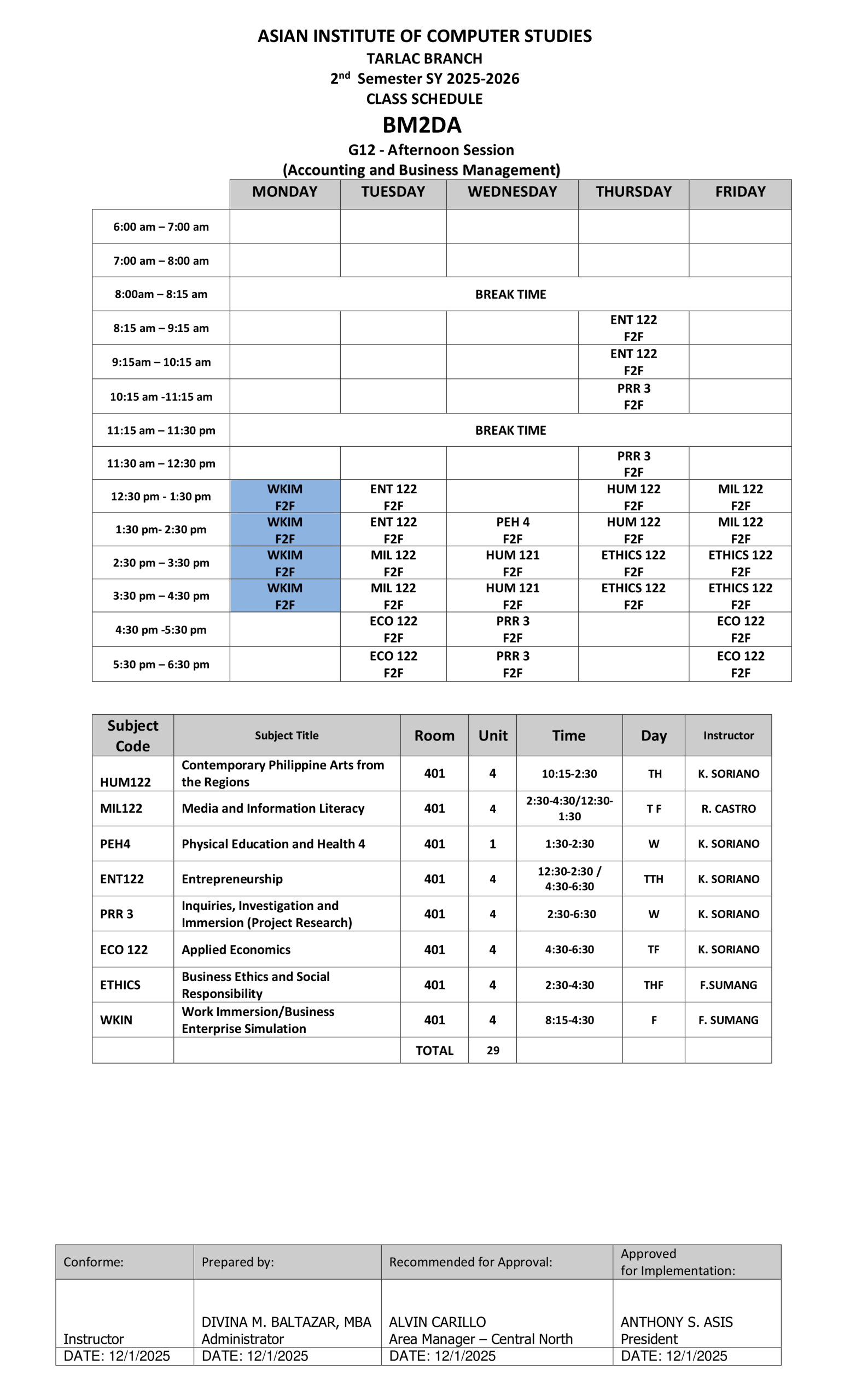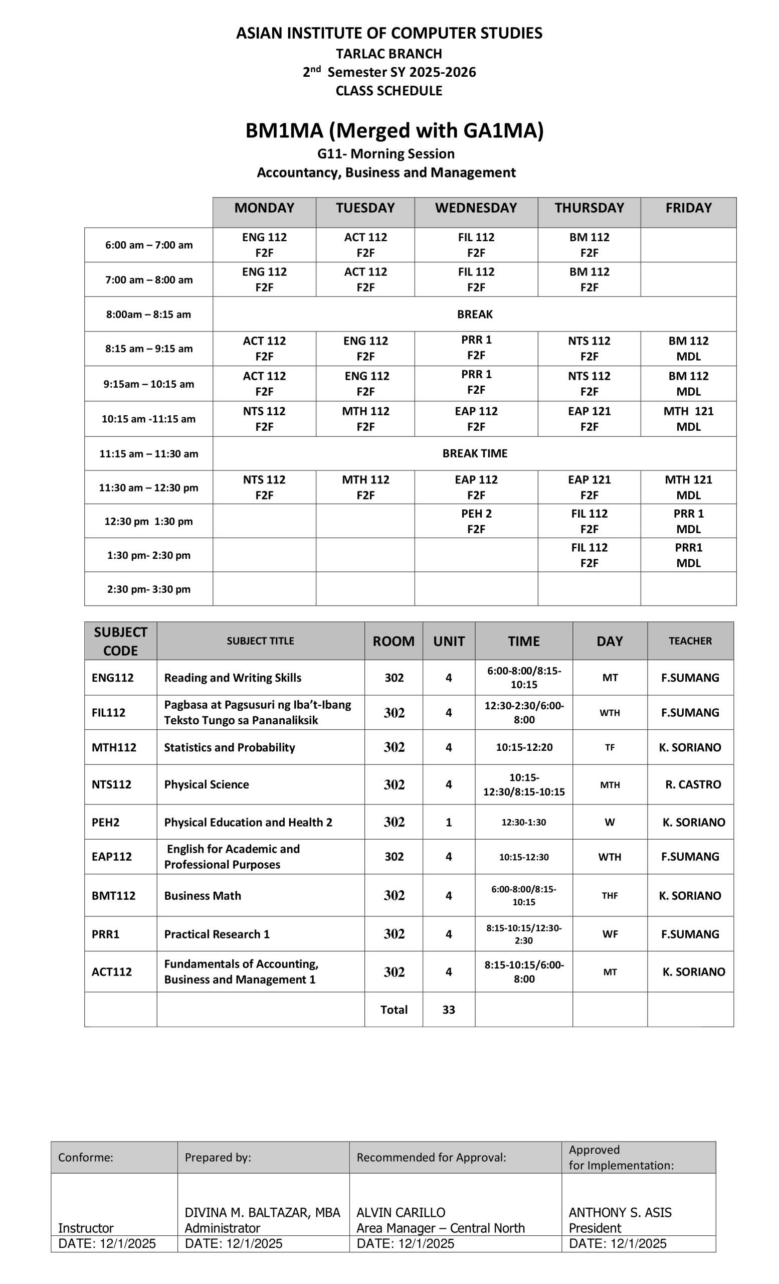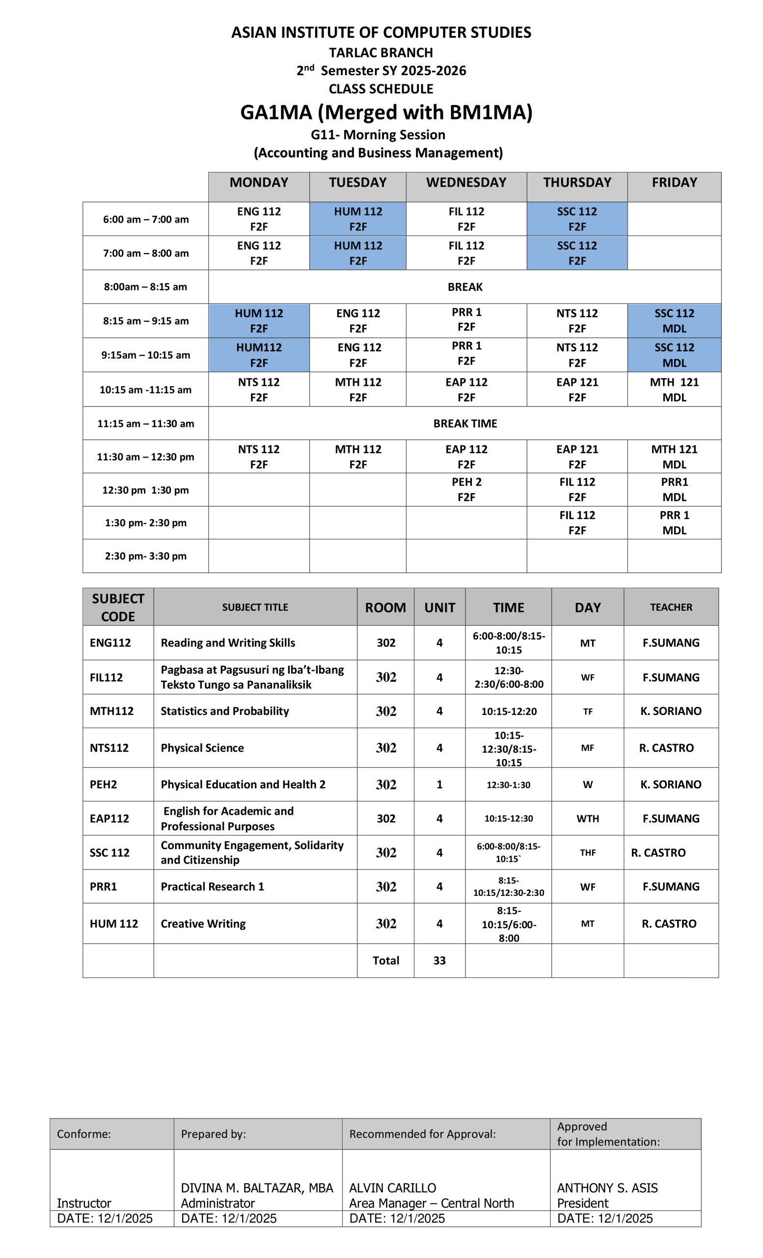 SHS Grade 11 and 12, 2nd Sem, SY 2025-2026 Click thumbnails to enlarge the image 2nd Semester – Morning and Afternoon Sessions